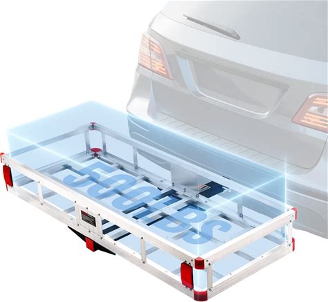 VEVOR 50 X 29.5 X 8.7 Inch Hitch Cargo Carrier 500Lbs Capacity Trailer Hitch Mounted Cargo Basket Aluminum Luggage Carrier Rack With Folding Ramp