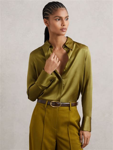 Reiss Concealed-Placket Silk-Satin Shirt, Black, Women's, 12, Shirts Tops Blouses Button Down Shirts
