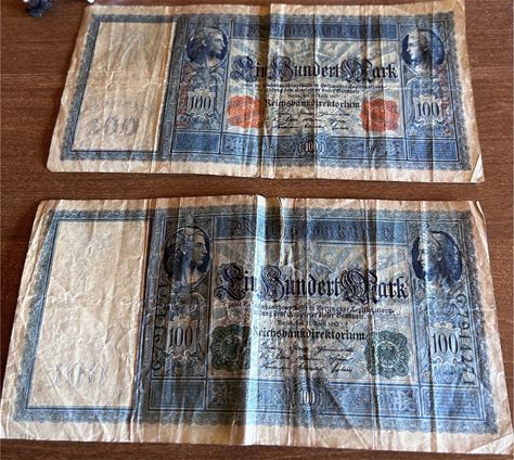 2 Authentic German 100 Mark 1910 Red Seal BANKNOTES CURRENCY 113 YR OLD HISTORY