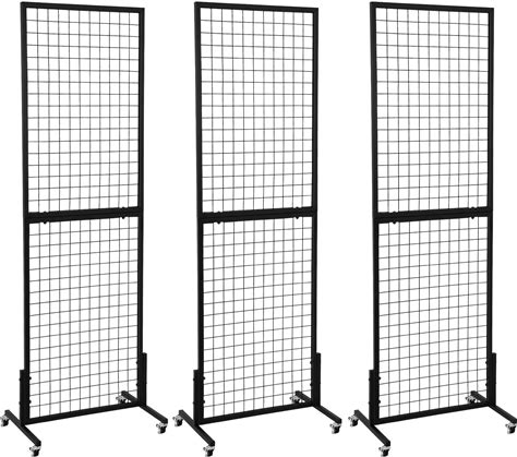 OUDUCK 3 Packs 1.8' X 5.7' Grid Wall Panels Standing Wire Grid, Display Rack With T-Base Wheels Freestanding Gridwall Panel Tower For Shows, Black