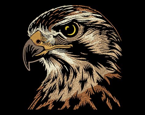 Realistic Hawk Head Embroidery Design - Fill Stitch Noble Bird For Dark Fabrics, Nature & Sports Lovers Gift Emblem, Lifelike Craft Pattern