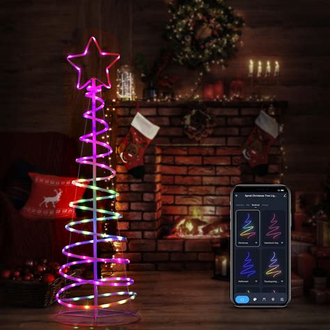 Brillihood 5ft Spiral Christmas Tree Light, LED Color Changing Neon Cone Tree With 40 Scene Modes & Music Sync, Smart App Control Christmas Decor For