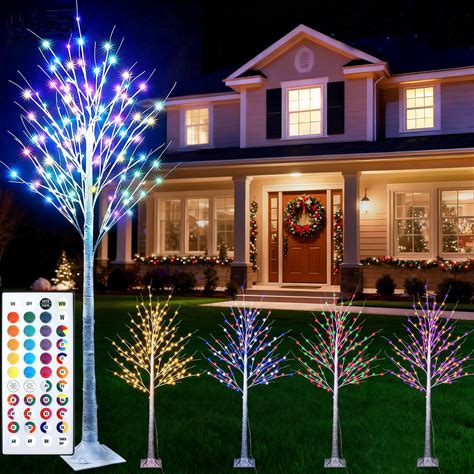 7ft Birch Tree With LED Lights 35 Colors Changing Lighted Birch Tree Outdoor, Remote Control White Trees With Colorful Lights For Indoor Outside Home