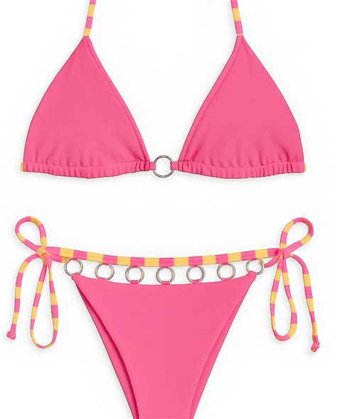 Women's String Bikini Set With Metal Detail - Pink & Orange | Small | Live Kolibri