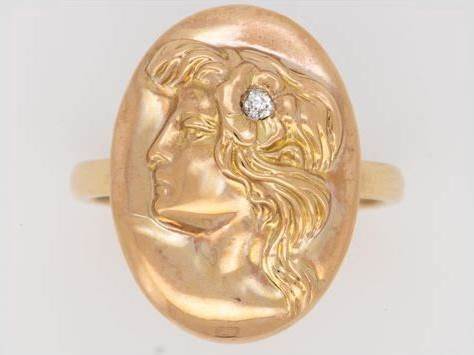 Victorian Art Nouveau Woman Face Diamond Repousse Design Cufflinks Converted To Ring 14K Gold Hair Women Reimagined Vintage Conversion R6281