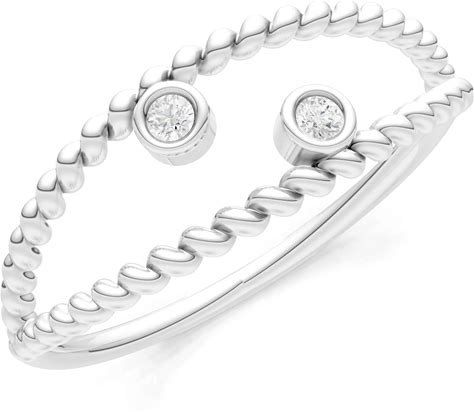 10K White Gold Diamond Rope Cut Double Station Band Ring, Round Cut, 0.02 Ctw | Wedding, Engagement | Ruby & Oscar - R209904W