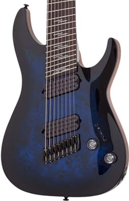 Schecter Omen Elite-8 Multiscale 8-String Electric Guitar - See Through Blue Burst 8-String Electric Guitar With Mahogany Body, Burl Top, Maple
