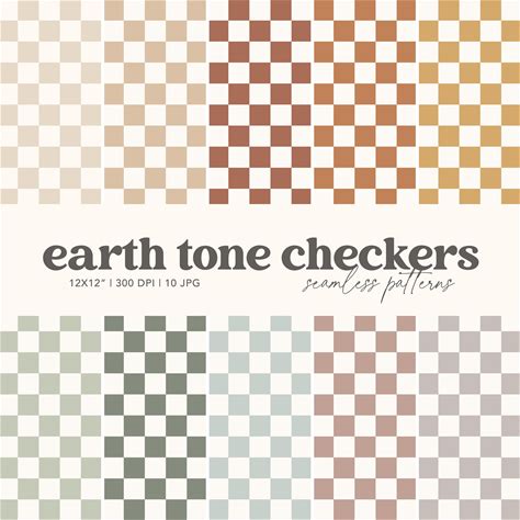 Boho Earth Tone Checkers Seamless Patterns, Muted Checks Repeating Pattern, Retro 70S Checkerboard Digital Paper Background