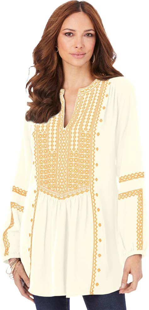 Plus Size Women's Embroidered Boho Tunic By Roaman's In Ivory (Size 44 W)