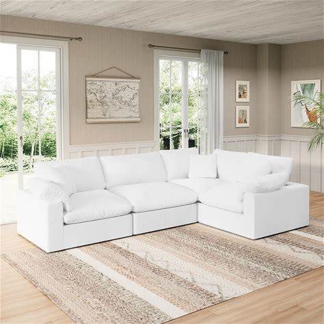 Intuition Decor Modular Sectional Sofa Cloud Couch,Down Filled Comfy Cloud Modern Sofa,White Linen Oversized Couch Cushion Covers Removable For Living