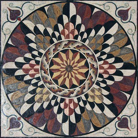 Handmade Floral Marble Mosaic Tile: Layered Geometric Pattern (40X40)