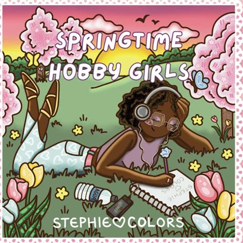 Springtime Hobby Girls Coloring Book For Teens And Adults: Hand Drawn Illustrations Featuring Spring Themed Hobbies With Bold And Simple Lines