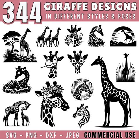 Giraffe Vector Bundle (Svg, Png, Eps, Dxf), Commercial Use (Digital Download)