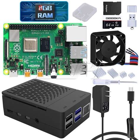 Raspberry Pi 4 Starter Kit Enlosure Case Fan Power Supply Hdmi Cable SD Card. 52Pi. Black. Computer Cases.