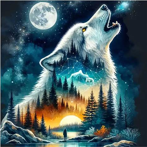TURGF Girl And Wolf 5D Diamond Painting Kits For Adultsdiy Diamond Art Wolf Diamond Painting Full Drill Beginners Craft Kits For Home Wall Decor