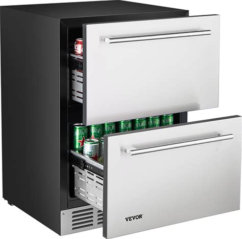 VEVOR 24 Inch Under Counter Drawer Refrigerator Stainless Steel Dual Drawer Fridge With Temperature Control Outdoor Refrigerator With Powerful
