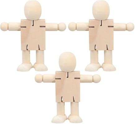 Pretyzoom 3Set DIY Unpainted Dolls Hardwood Movable Joints Drawing Robot For Craft Projects