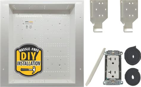DATA COMM 45-0071-WH Recessed Low Voltage Cable Plate with Built-In Duplex Receptacle Outlet, Easy To Install - Ideal for Home Theater, TV & Power Cable Management, Mid-Size, White