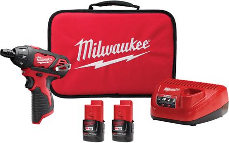 Milwaukee M12 Hex Screwdriver Kit, 2 Batteries, 1/4in. Keyless Chuck, 500 RPM, Model 2401-22