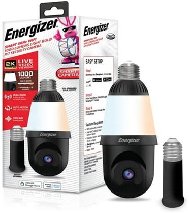 Energizer 1000 Lumens Light Bulb Camera, 2K Outdoor Smart Home Security Camera W/ Auto-Motion, Black