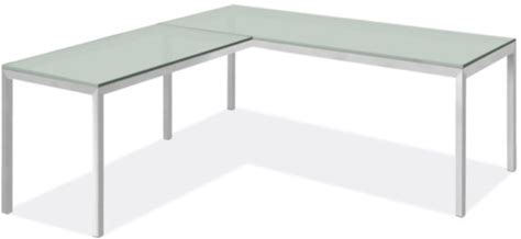 Room & Board | Modern Parsons L-Shaped Office Computer Desk W/ Return & 1.5" Leg | Satin Etched Tempered Glass Top | Large | 60W 96D 29H