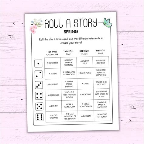 Spring Roll A Story - Creative Writing Prompt Activity - Printable Story Dice Game - Literacy Activity - Roll A Story - Writing Challenge