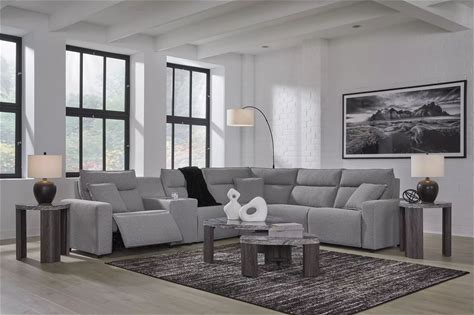 Ashley Modmax Salt And Pepper Performance Fabric 6 Piece Power Reclining Sectional, Dark Color/Gray, Contemporary And Modern Couches From Coleman