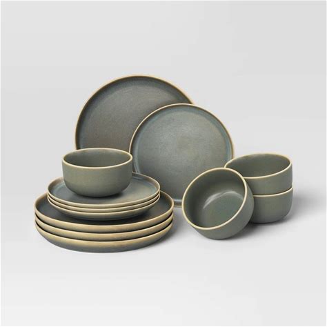 12Pc Stoneware Tilley Dinnerware Set Olive Green - Threshold