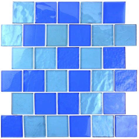 Landscape Horizon Blue Square Mosaic 3 in. X 3 in. Textured Glossy Glass Decorative Pool Tile Sample