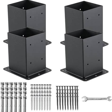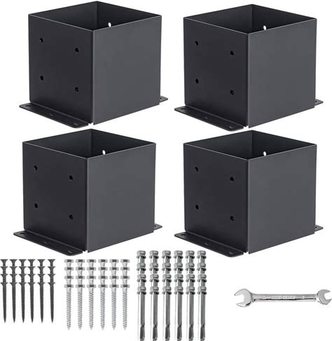 XZWMY 4X4 Post Base 6 Pcs, Post Brackets (Inner Size 3.6"X3.6"), Black Powder-Coated Heavy Duty Solid Steel Deck Post Anchor For Outdoor Support Deck,
