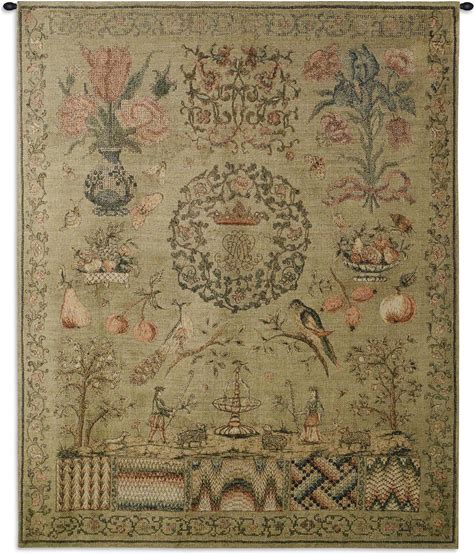 Sampler I | Woven Tapestry Wall Art Hanging | Vintage Sewing And Needlepoint Patterns Historic Reproduction | 100% Cotton USA Size 53X44