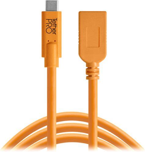 Tether Tools Tetherpro USB Type-C Male To Micro-USB 3.0 Type B Male Cable (15', Orange, Right-Angle)