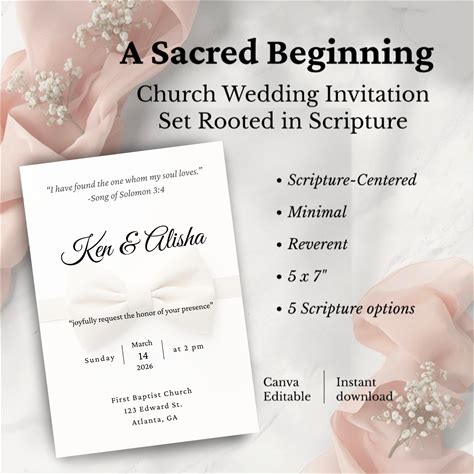 Christian Church Wedding Invitation With Scripture | 5 Bible Verse Canva Templates | Elegant Faith Wedding Invite