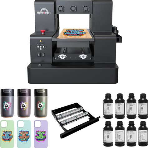 Rainbowdgt UV Printer Machine With Computer XP600 A4 Multifunction Flatbed Printers With Bottle Holder For Acrylic Metal Golf Bottle Phone Case And