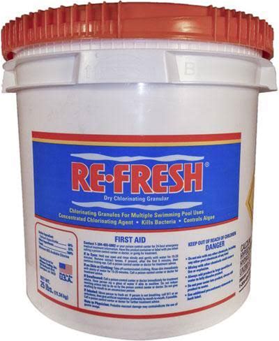Refresh Granular 68% Active Chlorine Shock | 50-Pound Bucket With 1/2 Pound Scoop | Perfect For Swimming Pools, Use As Bactericide, Algaecide, Disinfectant In Pools Spas | Fast Dissolving - 50LB