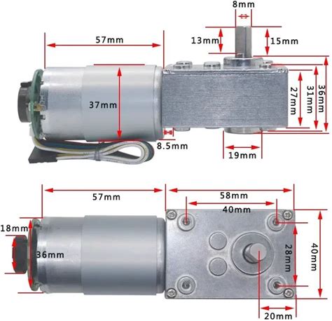 5840-555 DC Worm Gear Motor With Encoder 58mm40mm 12V 24V Self-Locking Adjustable Speed CW CCW