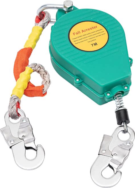 150Kg Self Retracting Lifeline,330Lbs Safety Fall arrester,7m/23ft Fall Protection With Alloy Steel Hook Steel Wire Rope For Construction, Climbing Double Disc Brake System Green