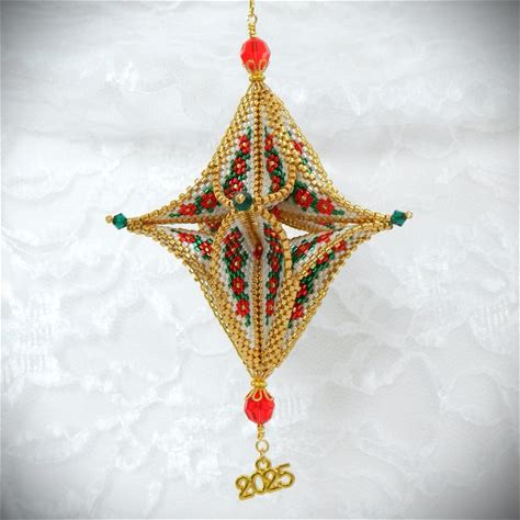 3D Peyote Beaded Open Pod Poinsettia Christmas DIY Ornament TUTORIAL/DOWNLOAD