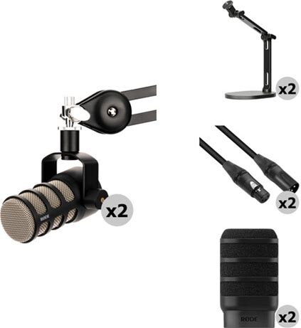 RODE Podmic 2-Person Dynamic Podcasting Microphone Kit With Desktop Studio Arms, Pop Filters & Cables (Black)