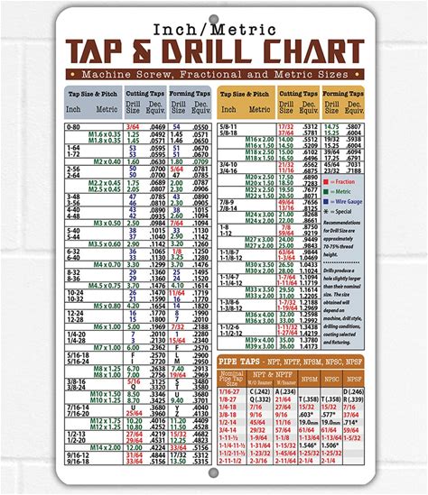 Tap & Drill Metric Conversion Chart Durable 8X12 Metal Sign -Easy-To-Read Reference For Machinist, Tool Shop, Engineering, DIY, Industrial Workshop,