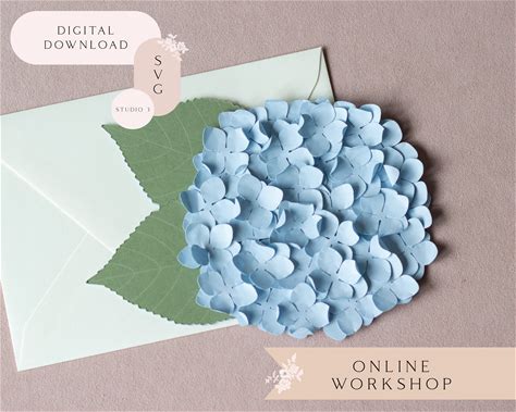 Hydrangea Flower Folded Card With Leaves Online Workshop For Cricut Silhouette Includes SVG Studio3 Templates Video Tutorials Material List