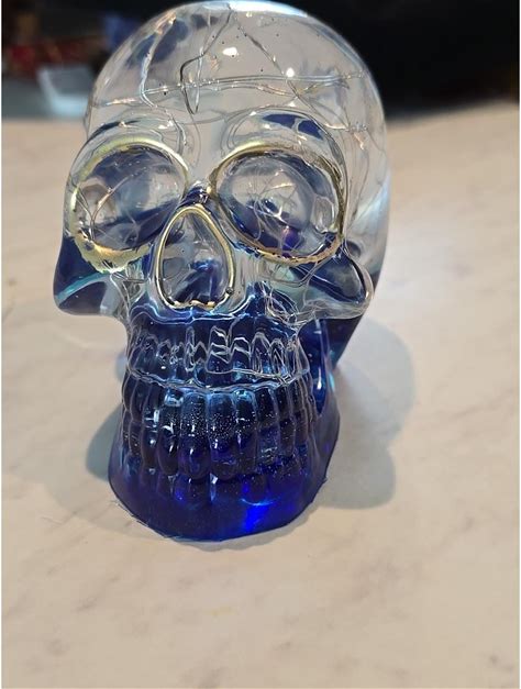 3D Human Head Light Up Skull Decoration Gift Blue Clear 667