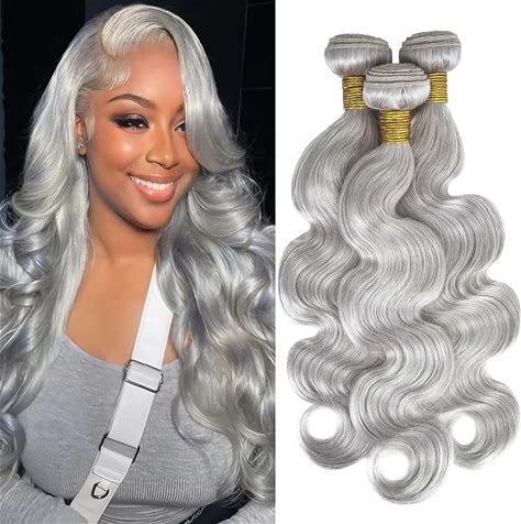 Silver Gray Body Wave Bundles Human Hair 10-30 Inch 100% Virgin Human Hair Weaving Extensions Double