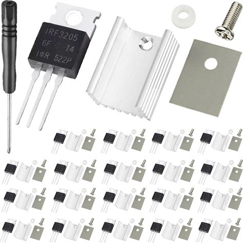 DAOKAI IRF3205 3205 Mosfet Transistor 55V 110A N-Channel Power MOSFETS Transistor TO-220 With Aluminum Heatsink Screwdriver Mounting Kits,For DIY(20