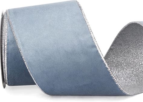 Ribbli Dusty Blue Velvet Wired Ribbon 4 Inch Dusty Blue Velvet With Silver Glitter Christmas Ribbon For Christmas Tree Decoration Big Bow Gift