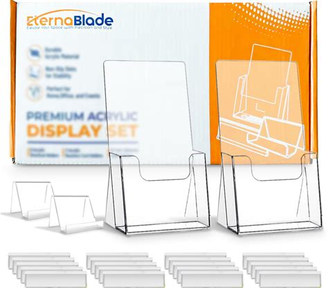 Acrylic Brochure Holder And Business Card Holder 2 Pack With 20 Self Adhesive Label Holders, Acrylic Display Stands For Countertops, Clear Plastic