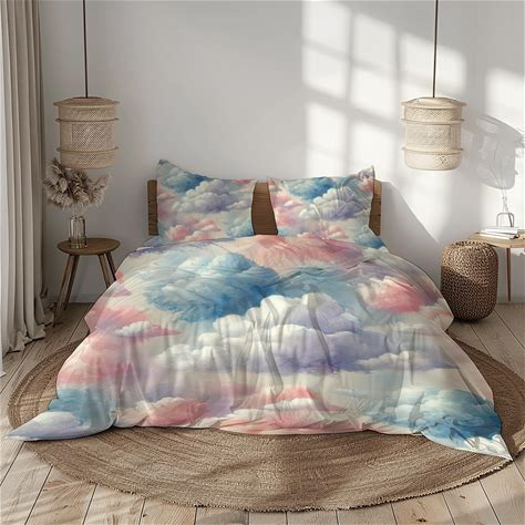Cloud Print Bedding Set, Blue Pink White Duvet Cover, Sky Pattern Bed Set
