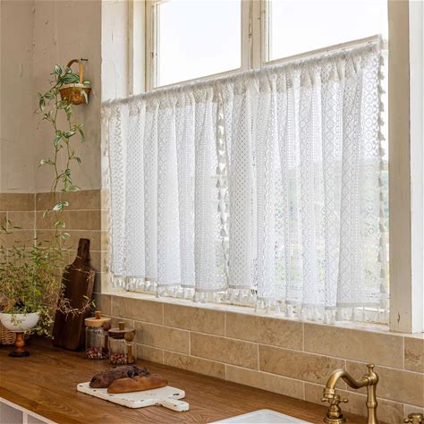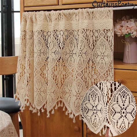 American Crochet Hollow Flower Splicing Checked Short Curtain For Kitchen Small Window Rustic Window