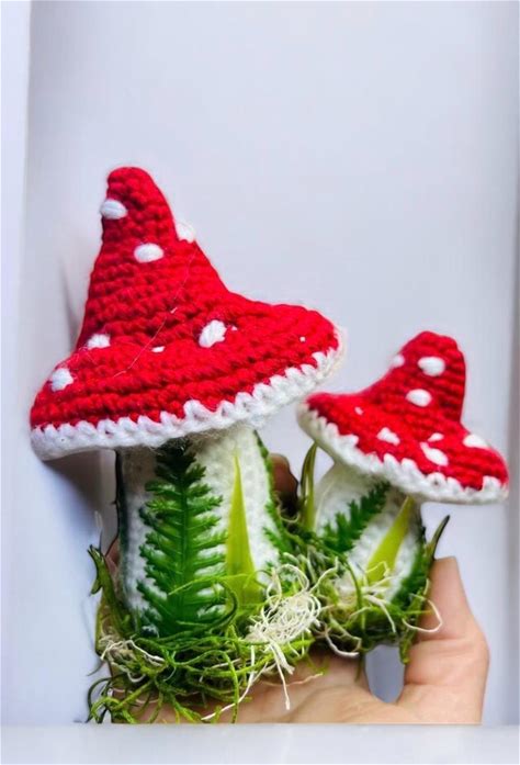 Handmade Crochet Mushrooms Amigurumi Toadstool Decor Cute Craft Supplies Fairy Core Aesthetic Woodland Decor Mushroom Ornament Soft Plush