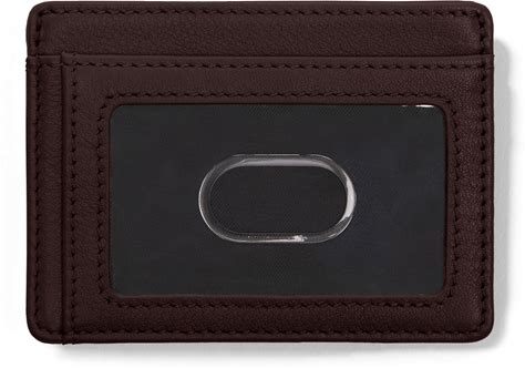 Slim ID Card Case - 3 Card Slots, Exterior ID Window, Center Pocket - Brown